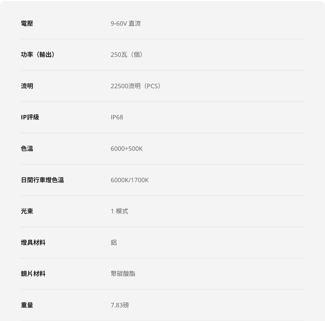這款20吋的LED燈條採用組合光束模式(遠光+泛光),兼具廣角覆蓋和遠距離照明。其廣角曲面反射器系統可在保持聚焦的同時擴大光束範圍,照射距離可達1150英尺(約350公尺)。